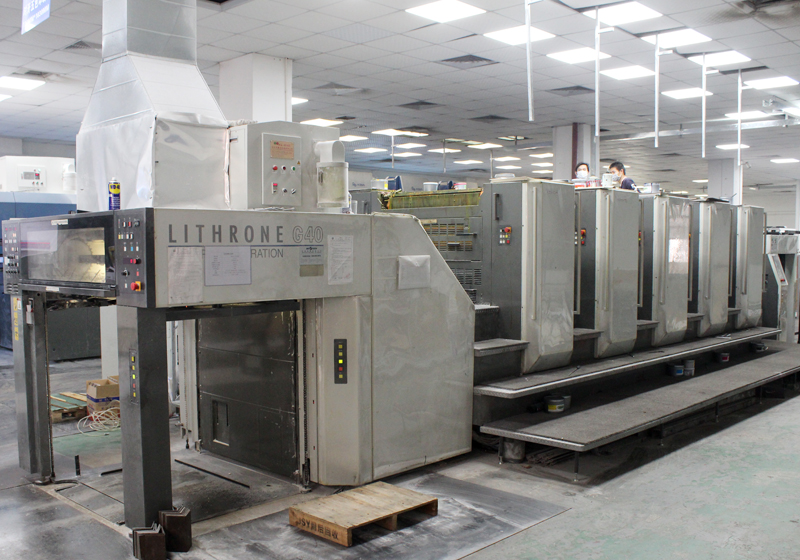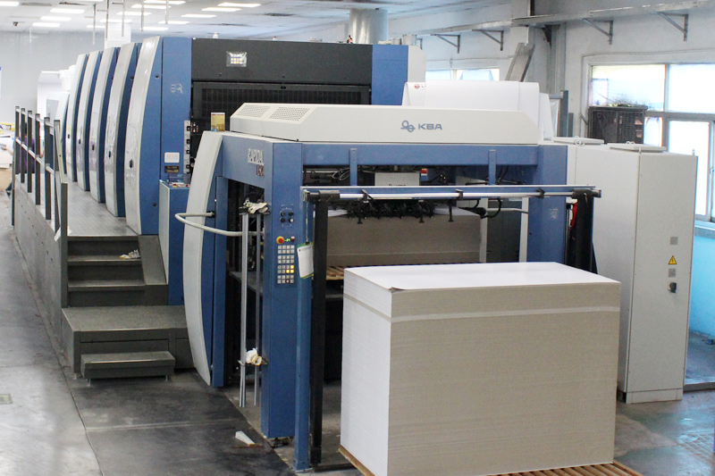 引進(jìn)德國羅蘭對開五色、羅蘭對開雙色、日本小森四開四色印刷設(shè)備,生產(chǎn)線完善